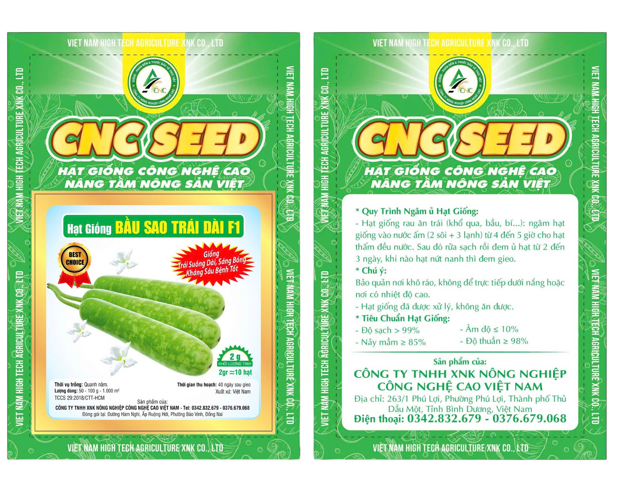 Hạt giống Bầu Sao Trái Dài F1 của thương hiệu CNC SEED là lựa chọn hàng đầu cho bà con nông dân muốn trồng bầu năng suất cao, trái đẹp, dễ tiêu thụ và mang lại hiệu quả kinh tế vượt trội.